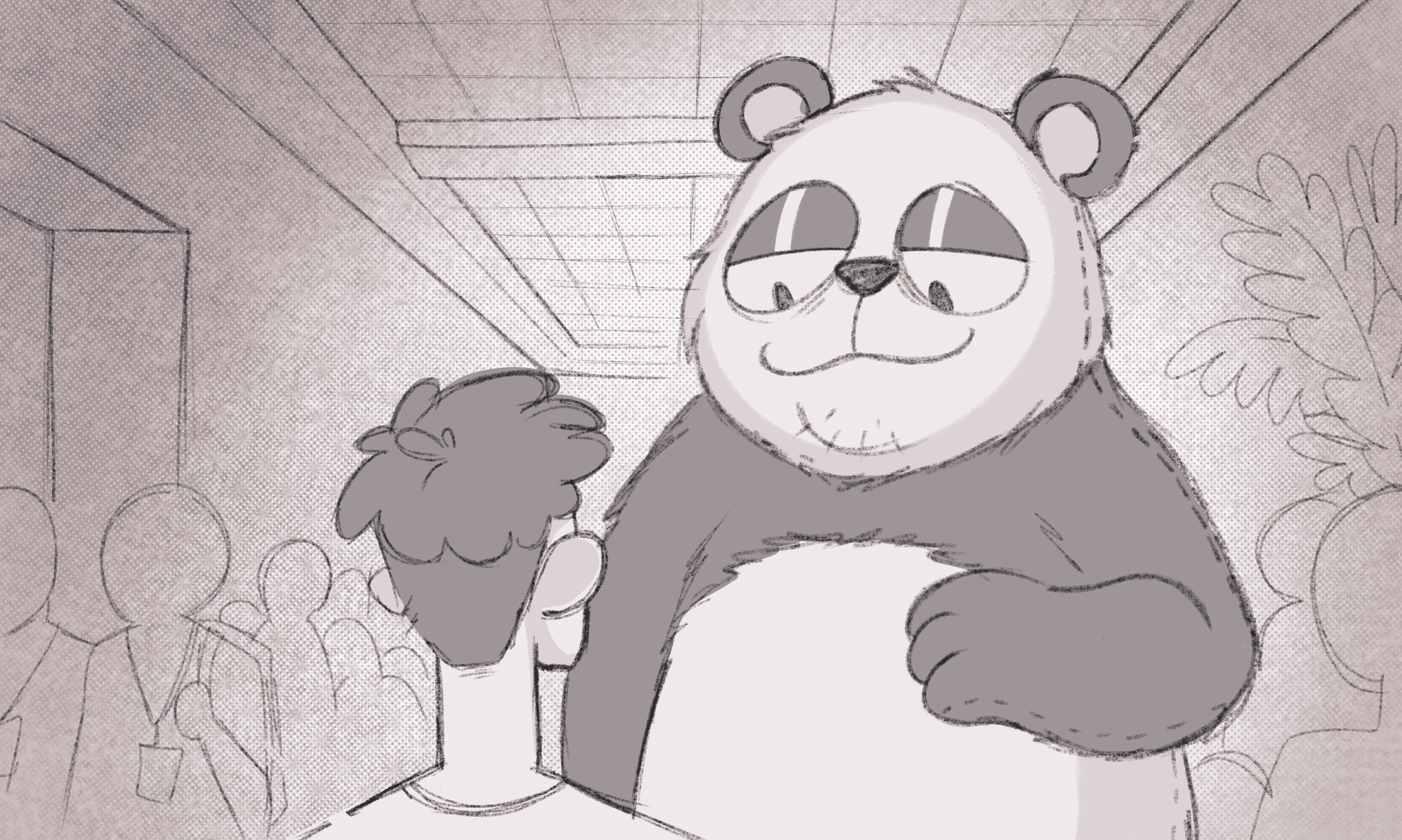 Bartolomeu é um panda de pelúcia que habita o evento com uma autoridade difícil de explicar racionalmente. Não tem crachá. Não está na programação. Mas está lá, e as pessoas param, e tiram foto, e seguem em frente levemente melhores do que antes. Dev tirou a foto. Seguiu em frente.